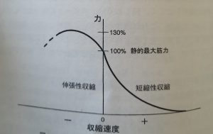 正が短縮性収縮の筋力の性質。負が伸張性収縮の性質。